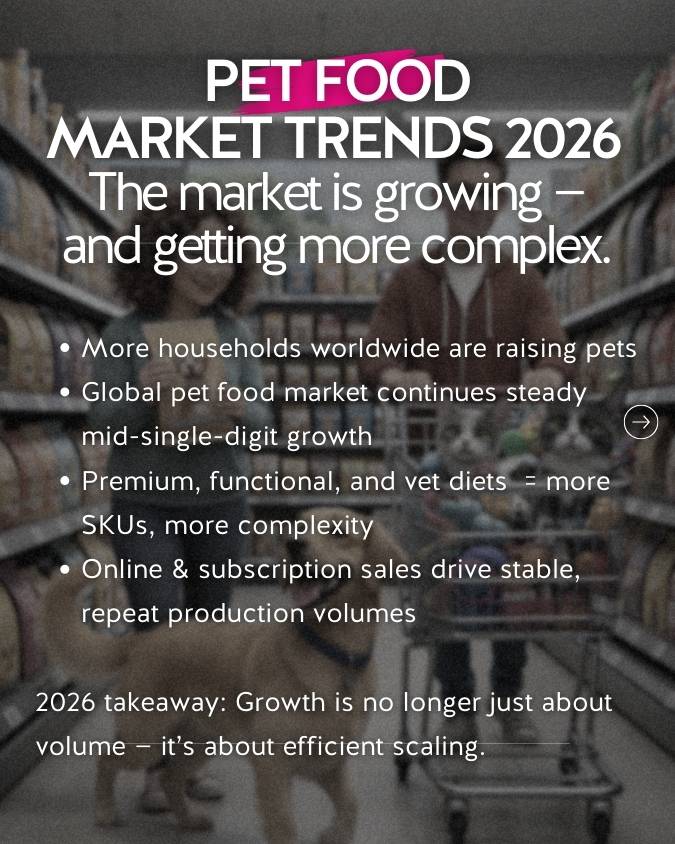 As pet food SKUs continue to expand, manufacturers must handle both pelletized products and finished packages with speed and consistency.