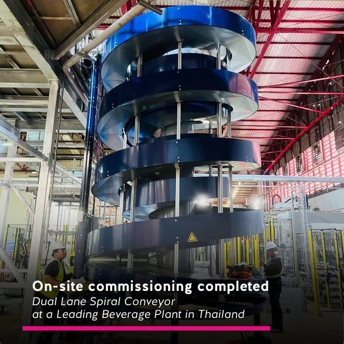 We’ve successfully commissioned 4 Dual-Lane Spiral Conveyors at one of Thailand’s leading beverage plants.